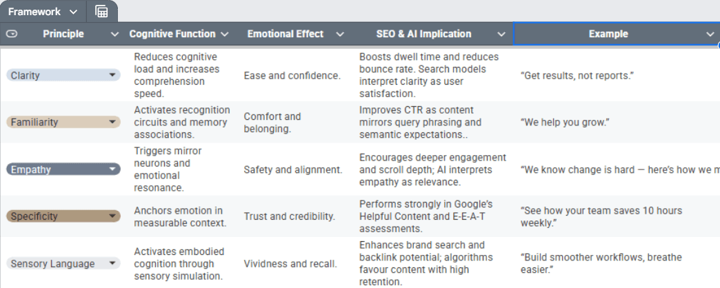 This micro-level emotional reading is what I call semantic safety — the way words create low-risk environments for attention and trust. Neuromarketing research shows that familiar, emotionally congruent language lowers the brain’s threat detection. It creates what behavioural economists call processing safety, a blend of predictability and comfort.